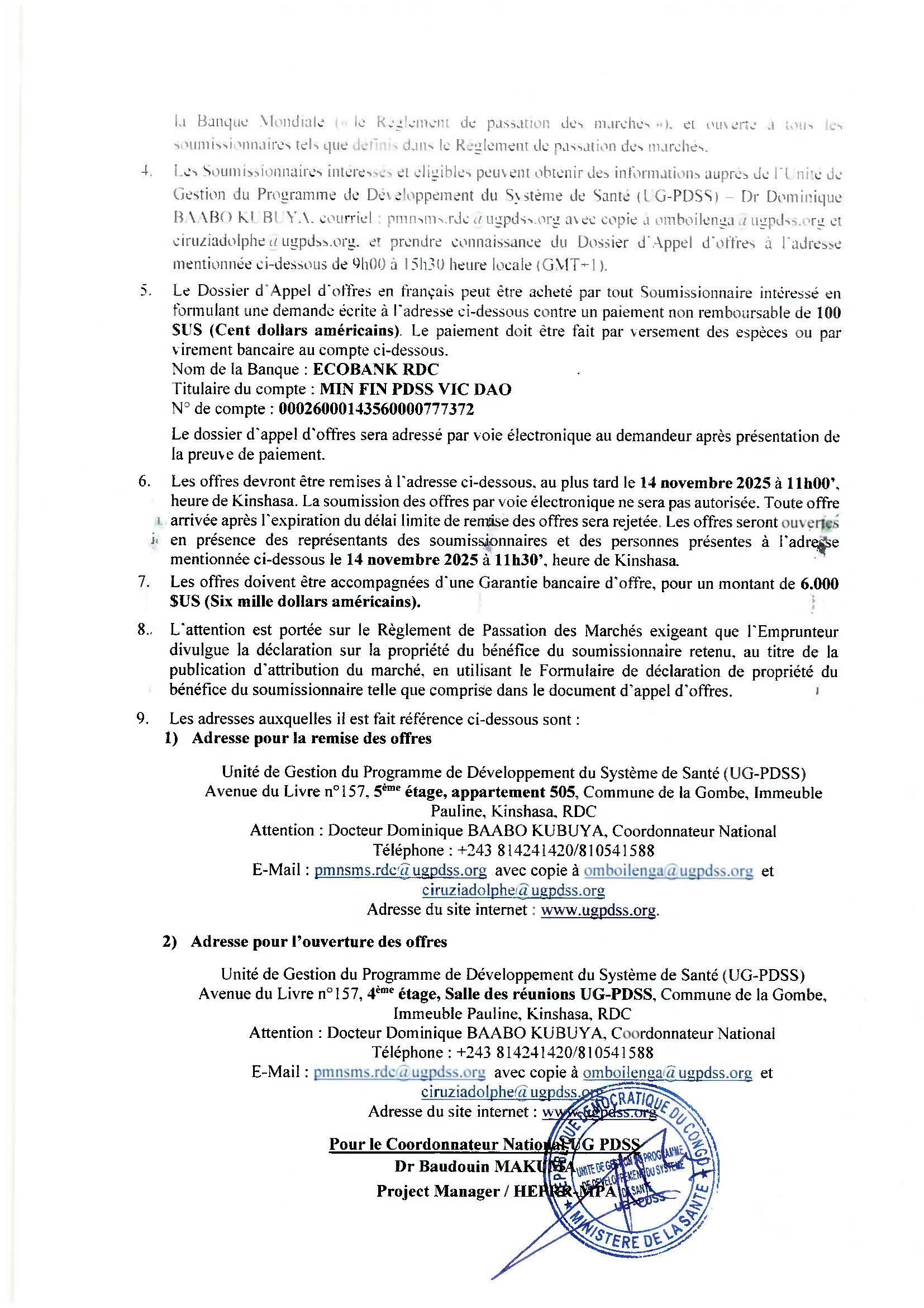 Travaux de réhabilitation de la Division Provinciale de la Santé (DPS) de la Province du Kasaï Central