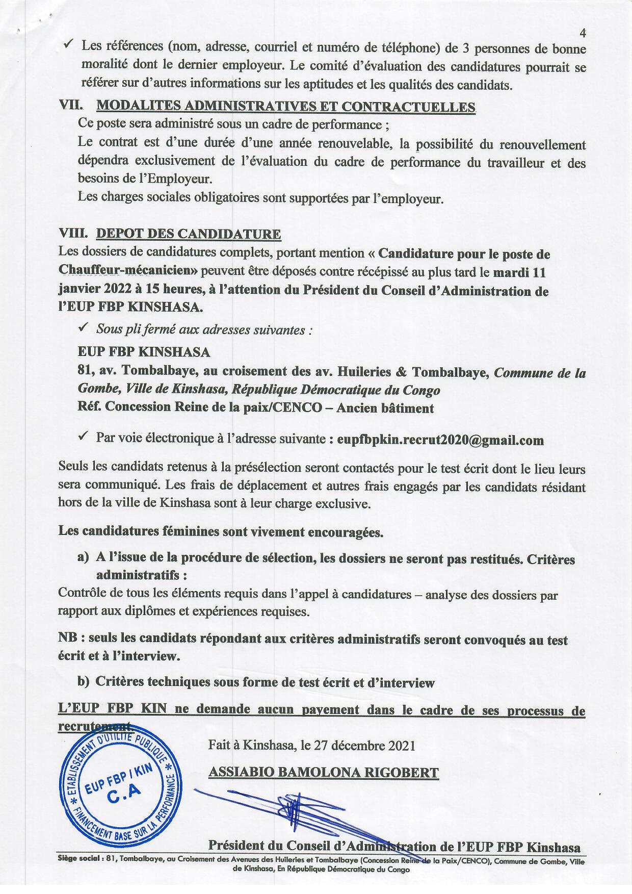 By Guylain Mafuta Avis de Recrutement d’un Chauffeur de l’EUP FBP KIN Avis de Recrutement d’un Chauffeur de l’EUP FBP KIN No Comments 28 décembre 2021