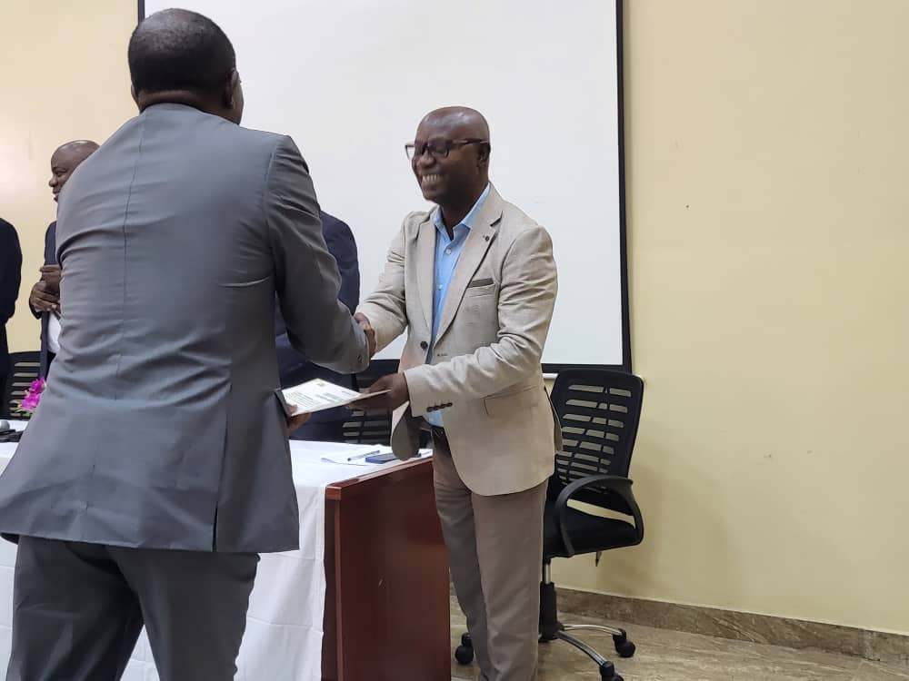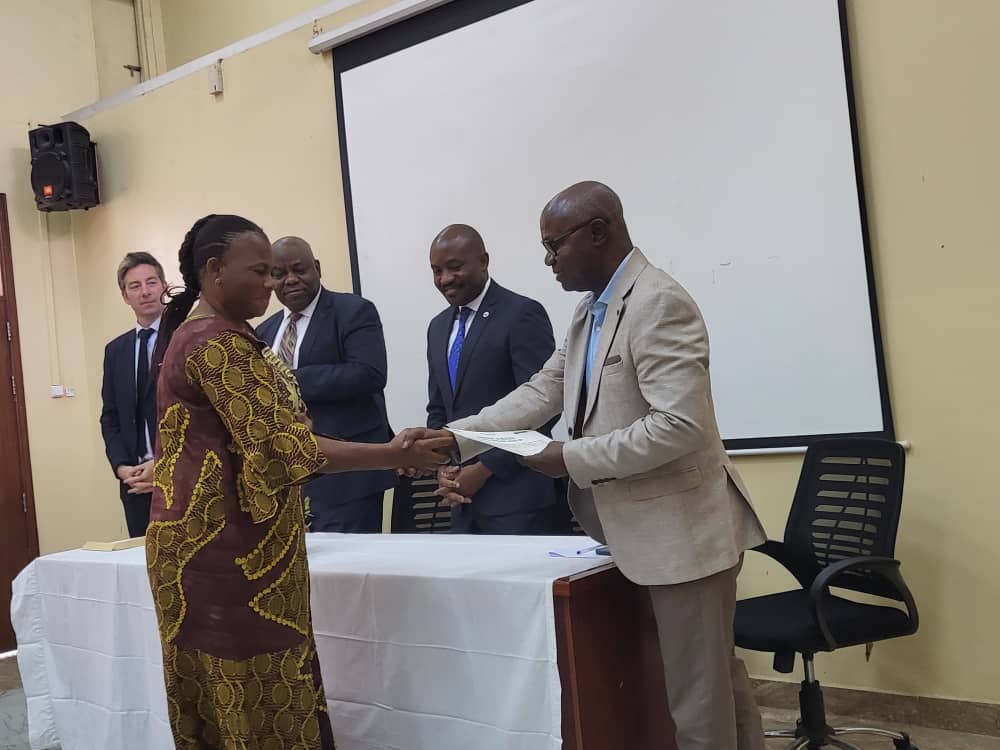La séance de remise des certificats s’est déroulée ce mercredi 20 Juillet 2022 en présence de l’Inspecteur Général de la Santé, KOMBA Djeko, du Coordonnateur de l’équipe santé de la Banque Mondiale, Dr Michel MUVUDI, du Représentant de l’UG-PDSS, Dr Baudouin MAKUMA ainsi que du représentant de Ginger International.